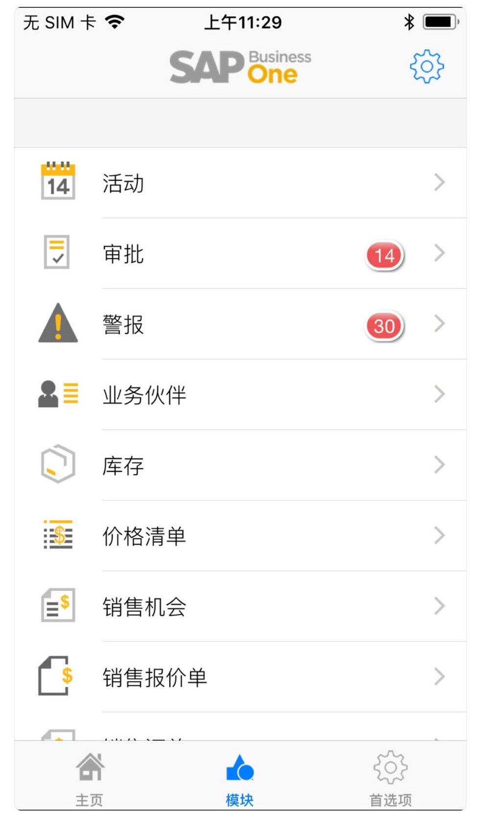 下面是SAP Business One 移動應(yīng)用APP截圖: