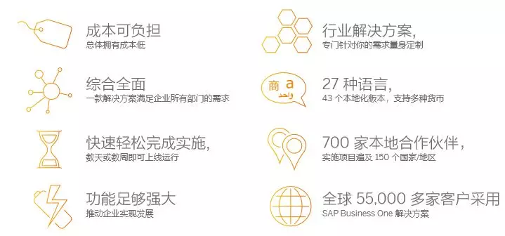 使用SAP Business One 這一解決方案您的企業可以獲得以下收益: