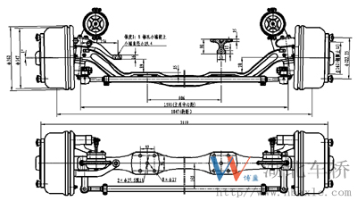前軸總成的滿載軸荷為3000kg,能滿足中型客車的額定載荷要求,前軸結構及裝配方法簡單,在使用、維修等方面安全、可靠、方便。