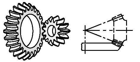 零度錐齒輪(圖2)就是螺旋角為零度的弧齒錐齒輪,彎曲的輪齒向直齒錐齒輪一樣處于相同的方向上。和弧齒錐齒輪一樣,在軸承上產(chǎn)生相同的推力載荷,可以用于相同的安裝,具有平滑的運(yùn)轉(zhuǎn)特性,可以在同一臺(tái)機(jī)床上制造。零度錐齒輪也可以進(jìn)行齒面的精密加工。有時(shí)螺旋角小于10度的弧齒錐齒輪都稱(chēng)為零度錐齒輪。