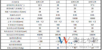2)19.5寸盤式制動器適用7-8米客車或3.5-4.5噸前橋總成