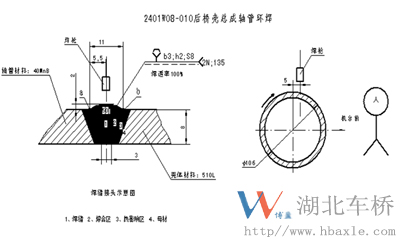 我司自制的鋼件沖焊橋殼總成加工方式主要是由焊接和機(jī)加兩種加工工藝而完成,而焊接加工工序中以軸管環(huán)焊為關(guān)鍵工序,環(huán)焊縫的質(zhì)量好壞直接影響到后橋殼總成的使用壽命。導(dǎo)致環(huán)焊縫斷裂的原因有以下幾點(diǎn);