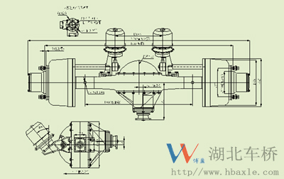 2401B02-010-5.857主減速器總成噪音低,傳遞扭矩大。設計突緣端面至橋殼中心線距離為355mm(見安裝尺寸圖)。主從動錐齒輪噪音低、壽命長等特點,其傳遞扭矩16500N.M,裝配成總成后噪音在84dB以下,壽命可達70萬次以上。