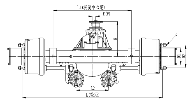 1.橋殼加強型設計,承載能力強;2.車輪輪輞定位方式可采用球面定位或止口定位;3.板簧距與輪距可靈活調整