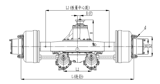 1.橋殼加強型設計,承載能力強;2.車輪輪輞定位方式可采用球面定位或止口定位;3.板簧距與輪距可以靈活調整;4.制動器可選用沖焊蹄,減輕重量